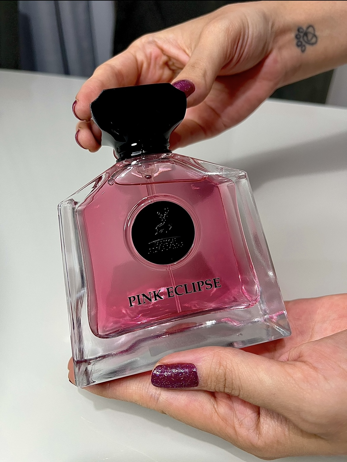 Pink Eclipse é um perfume doce, cremoso e cheio de personalidade, com aquele toque sedutor que lembra frutas vermelhas envoltas em baunilha. Ele abre com um frutado intenso e suculento, seguido por um coração floral delicado, e se transforma em um fundo quente, gourmand e viciante.